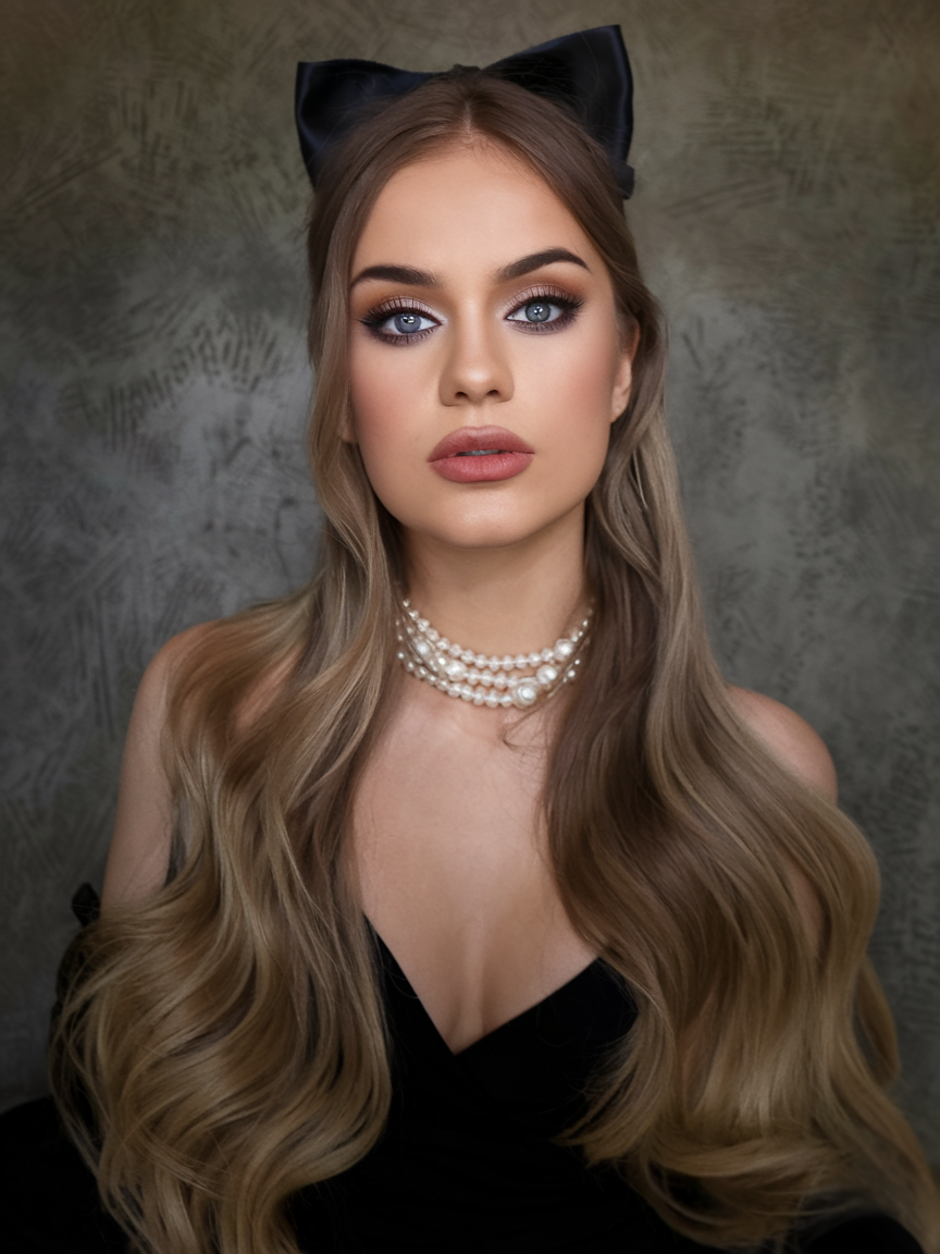 This glamorous half-up, half-down hairstyle is a stunning choice for autumn and fall hairstyles 2024, combining vintage elegance with modern chic. The soft waves, complemented by a sleek top adorned with a bow, make it a sophisticated yet cute option for formal occasions like weddings, prom, or evening events. Perfect for bridesmaids or wedding guests, this style enhances long hair with a sense of refined grace while keeping things fresh and trendy. It’s a great option for those looking for a romantic, simple style that’s easy to recreate.