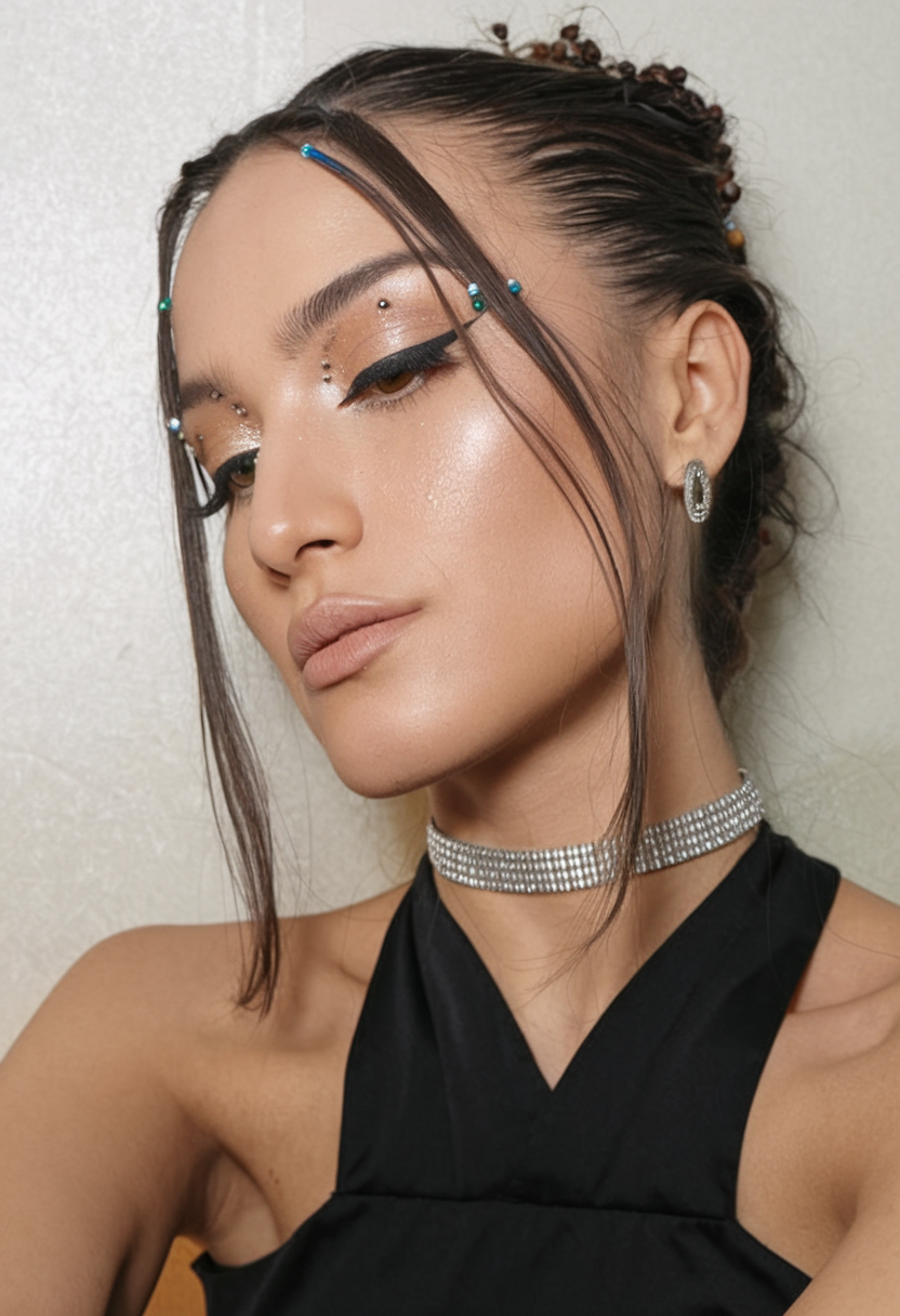 Sleek, Bejeweled Updo with Face-Framing Strands