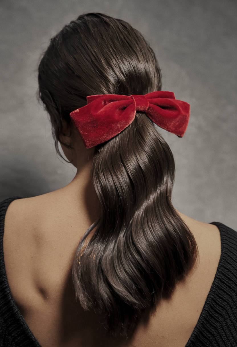 Elevate your simple ponytail with this trendy autumn style featuring a bold red velvet bow. The sleek, smooth ponytail exudes elegance, and the addition of the bow gives it a playful, feminine touch. This look works beautifully for women over 40 who want a stylish yet practical option for daily wear. It’s perfect for highlighting shiny, healthy hair, making it an ideal fall hairstyle color 2024 idea for brunettes.