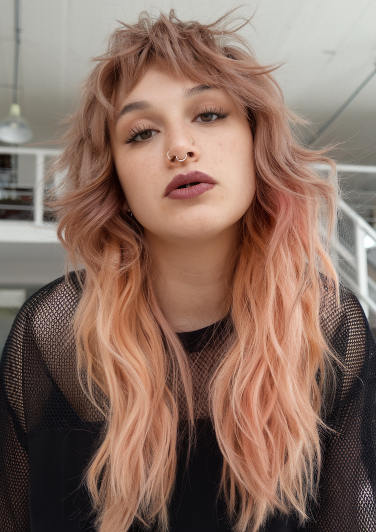 For those looking to embrace a bolder color, these rose-gold waves with a shaggy cut are a perfect choice. This style is both trendy and unique, offering texture and dimension with its slightly tousled layers. Ideal for younger women or those wanting to experiment with women with colored hair, this hairstyle gives off a cool, effortless vibe, perfect for fall. The soft pink tones are flattering for lighter complexions, and the shag cut adds a modern edge to the look.